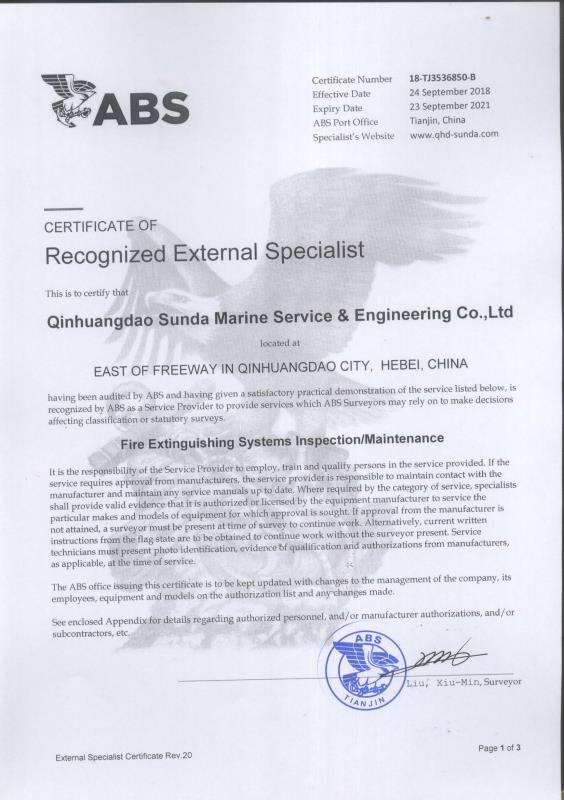 秦皇島順達船務有限公司位于美麗的海濱城市、中國北方著名的能源輸出大港--秦皇島。公司從事于船舶修理、物料供應、水下檢測、船體測厚、消防救生設備及救生艇檢驗、電氣自動化修理等服務。 公司自1997年成立至今,先后為國內外船東修理、檢驗各類船舶萬余艘,積累了豐富的施工經驗。公司現有場地100余畝,員工30余人,以及工程用車若干臺。我們公司一直本著嚴以律己、真誠待人、精益求精、信譽至上的經營理念,以優(yōu)質的服務、專業的施工、合理的收費,得到了國內外船東的廣泛認可,贏得了良好的口碑和信譽。 公司已取得了中國船級社(CCS)、美國船級社(ABS)、日本船級社(NK)、德國船級社(DNV GL)等各個船級社的消防救生和救生艇檢驗資質, ...